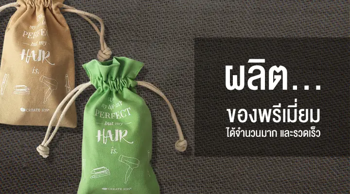 เรามีความสามารถในการผลิตสินค้าพรีเมี่ยมหลากหลายประเภท เช่น กระเป๋าผ้าสปันบอนด์ กระเป๋าผ้าร่มพับได้ กระเป๋าลดโลกร้อน พัดพลาสติก พัดสปริง แก้วน้ำ กระบอกน้ำ ปากกา สมุดโน๊ต เสื้อโปโล เสื้อยืด หมวก ร่ม และ สินค้าอื่น ๆ อีกมากมาย โดยบริษัทฯ ให้ความสำคัญในทุกกระบวนการตั้งแต่การออกแบบจนถึงการผลิต เพื่อให้มั่นใจว่าผลิตภัณฑ์ที่ส่งมอบจะมีคุณภาพและมาตรฐานสูงสุด พร้อมทั้งส่งมอบตรงเวลา