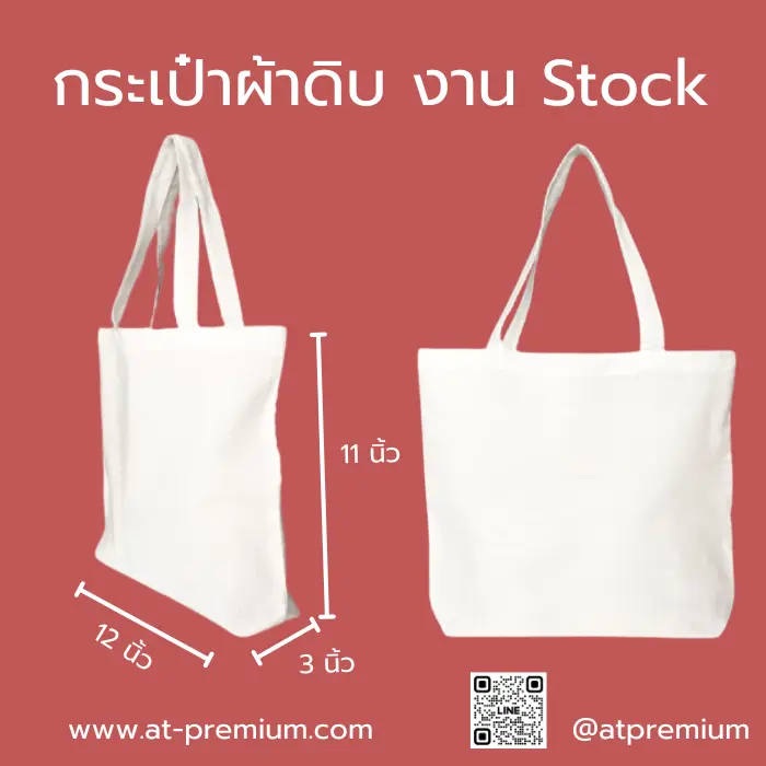 กระเป๋าผ้าดิบสกรีน เป็นกระเป๋าที่ทำจากผ้าฝ้ายที่ยังไม่ได้ผ่านการฟอกสีหรือการทำให้เนื้อผ้ามีความนุ่มนวล ซึ่งมักมีลักษณะพื้นผิวหยาบและมีความทนทานสูง เนื่องจากความหนาและความแข็งแรงของผ้า ทำให้กระเป๋าผ้าดิบเหมาะสำหรับการใช้งานที่ต้องการความทนทานและยาวนาน เป็นผลิตภัณฑ์ที่ทนทานและเป็นมิตรกับสิ่งแวดล้อม เหมาะสำหรับการใช้งานหลายประเภท เช่น การช็อปปิ้ง, การใช้งานในชีวิตประจำวัน หรือการเป็นของพรีเมี่ยมในงานโปรโมชัน นอกจากนี้ยังเหมาะสำหรับการพิมพ์โลโก้หรือข้อความต่างๆ เพื่อสร้างการรับรู้แบรนด์ และสามารถนำไปใช้ซ้ำได้หลายครั้ง