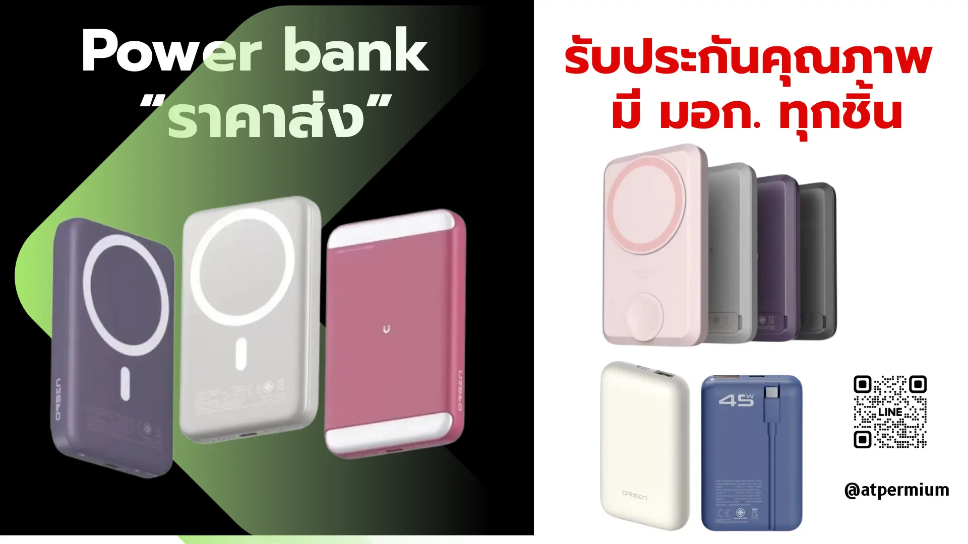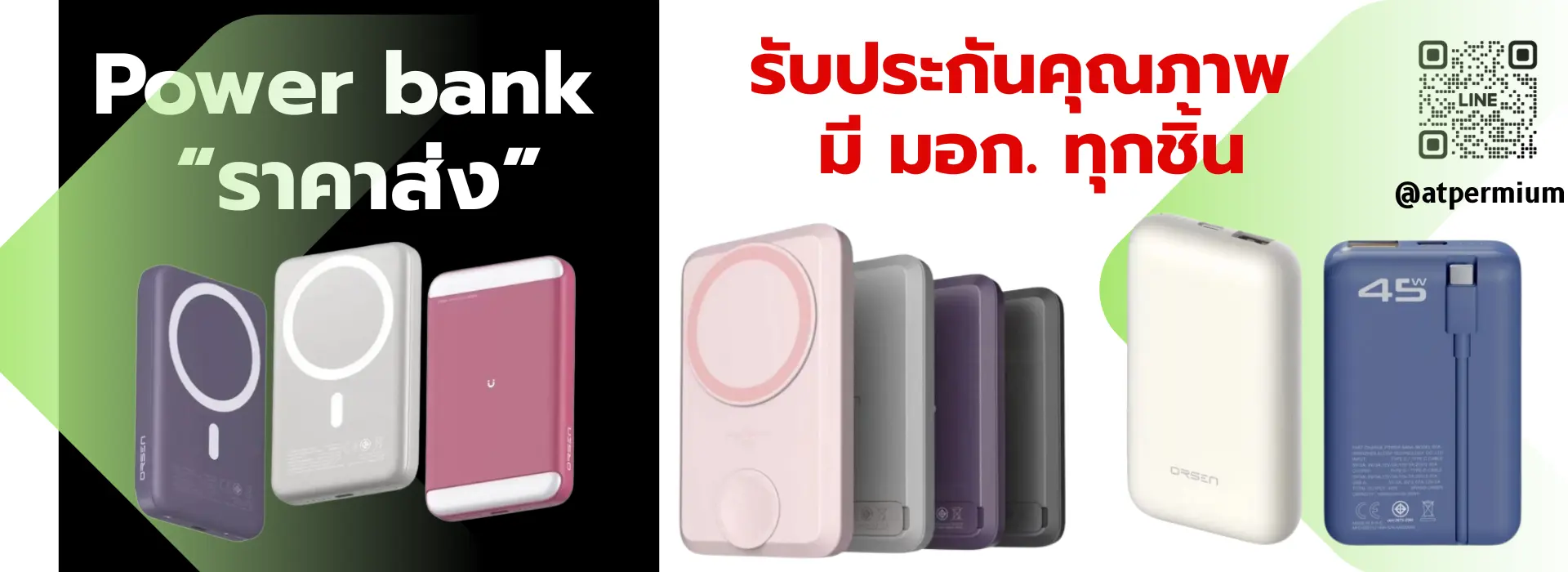 Power Bank (พาวเวอร์แบงค์) กลายเป็นอุปกรณ์จำเป็นสำหรับคนยุคดิจิทัล ไม่ว่าจะใช้ชาร์จสมาร์ทโฟน, แท็บเล็ต หรือแม้แต่โน้ตบุ๊ก ก็ตาม AT Premium เรามี “พาวเวอร์แบงค์ของแท้” “Power Bank ราคาถูก” มีหลากหลายความจุ 5000, 10000, 20000, 30000 และ 40000 Ah. สามารถสกรีนโลโก้ได้ตามต้องการ เป็นของแจก ของแถม คุณภาพเยี่ยม รับประกันสินค้าทุกชิ้น ส่งตรงจากโรงงาน ดีไซน์ทันสมัย น้ำหนักเบา พกง่าย ใช้ได้ทุกสถานการณ์
