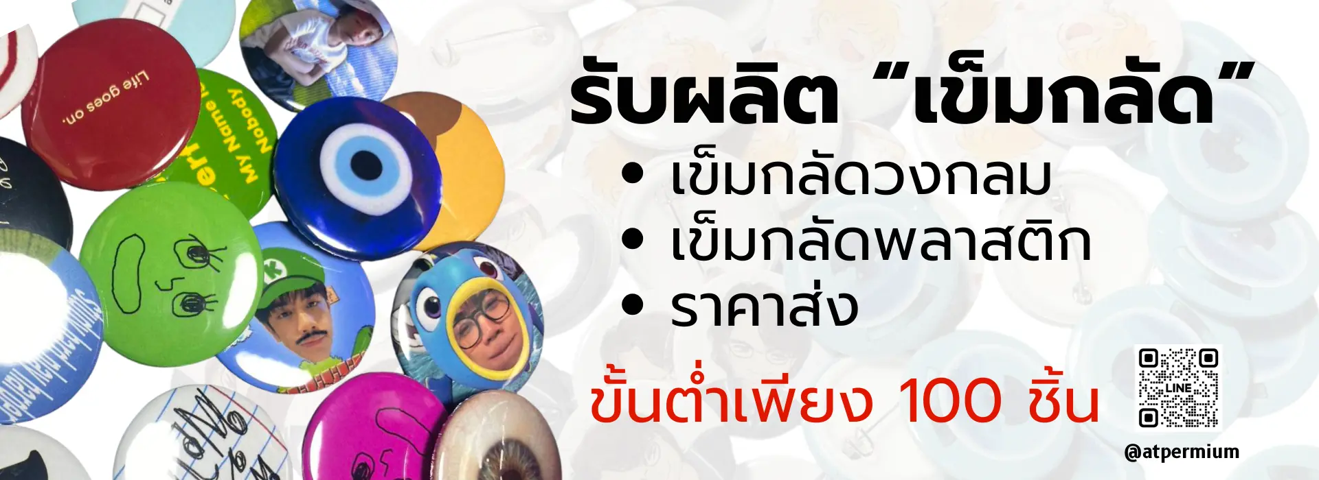 เอที พรีเมี่ยม เรารับผลิตเข็มกลัดสำหรับแบรนด์ องค์กร และงานอีเวนต์ เหมาะสำหรับใช้เป็นสินค้าจำหน่าย ของพรีเมียม ของที่ระลึก หรือใช้ในกิจกรรมทางการตลาดและงานอีเวนต์ต่าง ๆ สามารถผลิตตามแบบของลูกค้า หรือให้ทีมงานช่วยดูแลตั้งแต่การออกแบบจนถึงขั้นตอนการผลิต